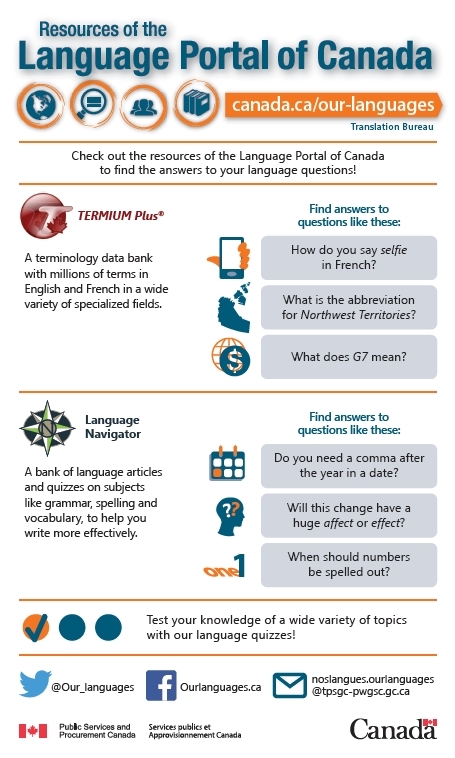 Check out the resources of the Language Portal of Canada to find the answers to your language questions!