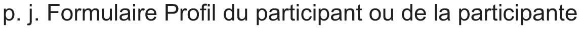 p. j. Formulaire Profil du participant ou de la participante