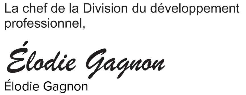 c. c. Mme Lyne Laframboise, Division du développement professionnel