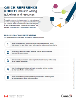 This quick reference sheet summarizes the main principles of inclusive writing and gives examples of practical techniques you can apply. It also contains a list of resources designed to help you write inclusively.